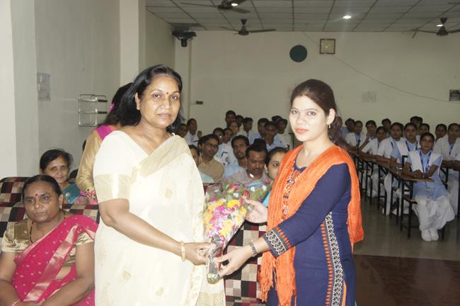 Description: Today the Nursing day was celebrated by the students of Kamla Modern Nursing institute at Kamla Hospital. The event was started by the lamp lighting ceremony by Chief guest, President of Rajkiye Nurses Sangh Mrs. Rani Verma, Mrs. Urmila Verma, Dr. Vinod Kumar Misurya & Mr. Captain Arvind Vishwanathan. The Guests were honored with Bouquets and Mementos. The Student of ANM and GNM presented skit and poems. The management wishes the entire student a very Bright and Successful future. All the Management and Faculty members were present at the event. Vote of thanks was given by our Principal Mr. Robin Joseph.