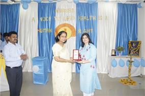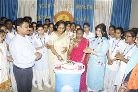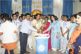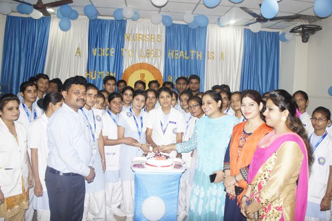 Today the Nursing day was celebrated by the students of Kamla Modern Nursing institute at Kamla Hospital. The event was started by the lamp lighting ceremony by Chief guest, President of Rajkiye Nurses Sangh Mrs. Rani Verma, Mrs. Urmila Verma, Dr. Vinod Kumar Misurya & Mr. Captain Arvind Vishwanathan. The Guests were honored with Bouquets and Mementos.